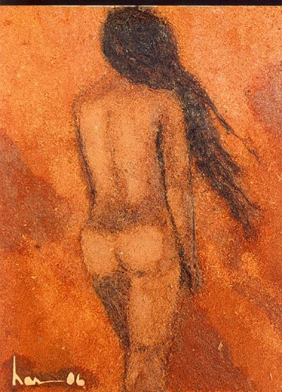 “Màu đỏ tớ cũng mất công tìm kiếm đúng 10 năm mới thấy. Một hôm mẹ ăn trầu, nhờ ra chợ Đồng Xuân mua cây vỏ. Tớ mới phát hiện ra vỏ ngoài cây vỏ có màu đỏ rất đẹp, để khô rồi vẫn màu đỏ.” Họa sỹ Tạ Hải tiếp tục kể về hành trình kiếm tìm màu sắc của mình.