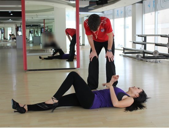 Ivan động viên khi Phương Thanh nằm sõng soài trên sàn tập vì mệt và đau