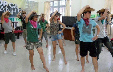 | Đội hợp ca TP.HCM tập vũ đạo, đây là thế mạnh của đội này |