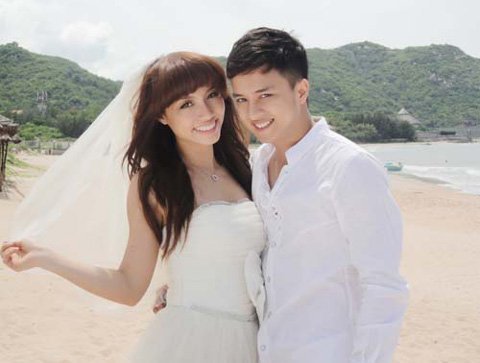 | Từng úp mở tình cảm với cô gái lạ trong MV phát hành hồi cuối năm ngoài, sau đó không lâu, Cao Thái Sơn cũng công khai những bức "ảnh cưới" chụp cùng cô gái này trên biển |