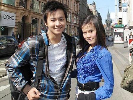 | Ngô Kiến Huy và Thụy Anh trong một chuyến lưu diễn |