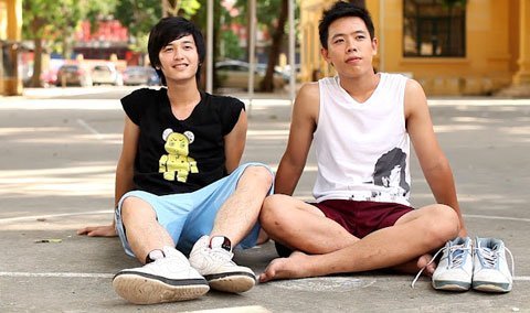 | Huỳnh Anh trong vai Kiên và Quốc Trung trong vai Hoàng |