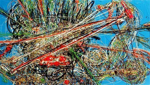 25 tác phẩm tại triển lãm không được đặt tên, chỉ mang số thứ tự. Người xem nhìn thấy cảm xúc của họa sĩ và hòa mình vào dòng chảy của những dây màu đa sắc nổi lên trên bề mặt vải bố. Với những góc nhìn đa chiều, các tác phẩm mang đến nhiều chiều cảm nhận khác nhau trong tính chân thực của màu sắc nguyên bản.