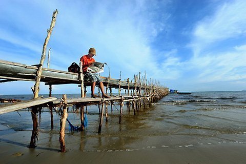 ảnh đọc báo ở nhiều nơi, từ thành thị đến nông thôn, từ trong quán ra