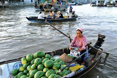vỉa hè, từ trên xe lửa xuống ghe xuồng...