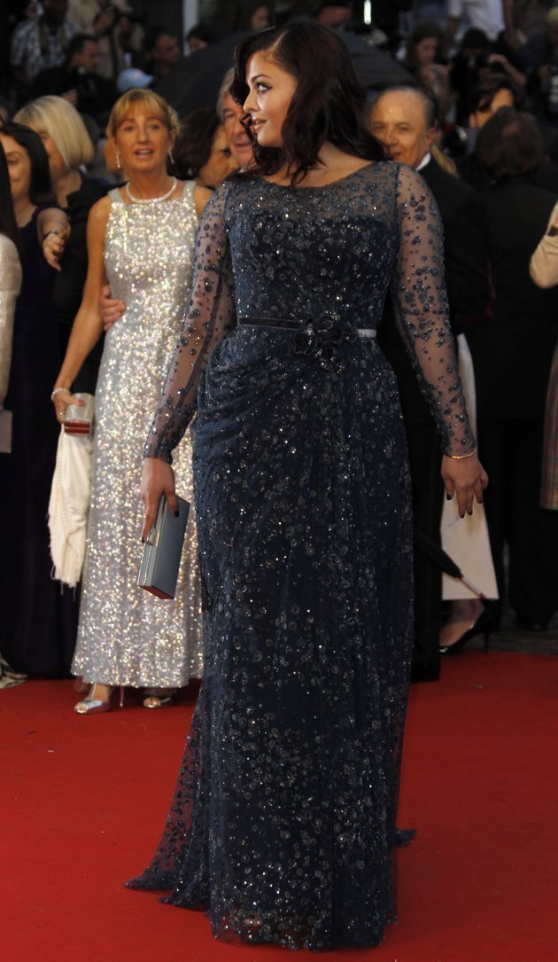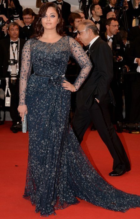 Trước đó 1 ngày, khi tham dự bữa tiệc từ thiện amfAR gây quỹ cho các hoạt động chống AIDS, Aishwarya Rai đã khéo léo chọn một bộ sari kín đáo màu kem pha vàng kèm chiếc khoăn choàng để che đi thân hình béo tròn của mình. Cô mới sinh con gái đầu lòng hồi tháng 11/2011.