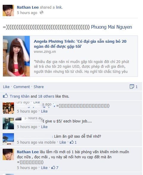 Có lẽ, đúng như lời Nathan Lee, lời "hét giá" của Angela Phương Trinh về 20.000 đô một lần gặp sẽ còn tiếp tục gây "dậy sóng" trong cư dân mạng.