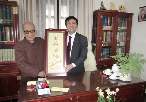 GS Vũ Khiêu tặng chữ cho nhà báo Hồ Quang Lợi