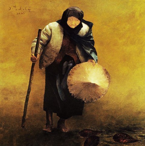 Trong âm hưởng quê hương ấy nổi lên giai điệu của bức “Một dáng chiều”, một họa phẩm đã được in trong nhiều tuyển tập nghệ thuật và được dân buôn tranh sao chép rất nhiều. Hình ảnh một bà mẹ già nua, đầu chit khăn mỏ quạ, tay chống gậy và cầm nón lá đi trong một không gian vàng xám đã gây xúc động mạnh cho người xem triển lãm.