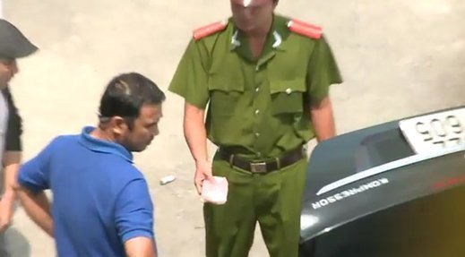 | Hình chụp trong clip đang lan truyền trên mạng về việc MC Quyền Linh bị công an bắt. |