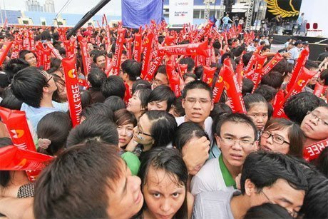 Cảnh khán giả chen lấn, xô đẩy thường xuyên diễn ra tại các chương trình lớn diễn ra tại các sân vận động rất dễ nguy hiểm đến tính mạng...