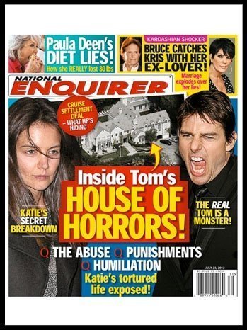 Enquirer phát hành ngày 11/7 viết "Tom Cruise thật sự là một con quái vật" với