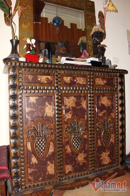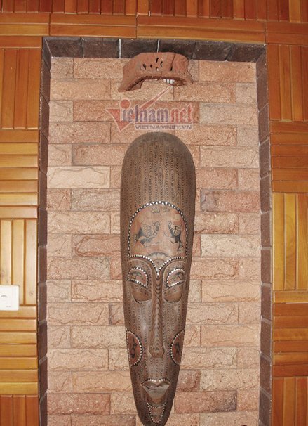 | Bước chân vào căn nhà, đập vào mắt là một chiếc mặt nạ làm bằng một loại gỗ quý. |
