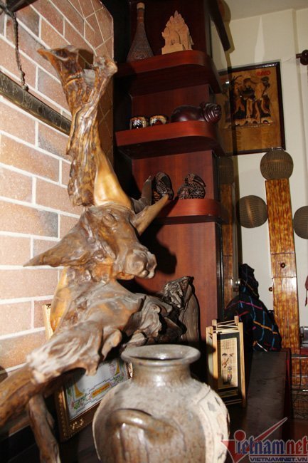 | Phòng khách trưng nhiều con vật bằng gỗ quý. |