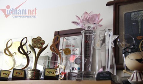 | Cúp giải thưởng được sắp xếp ngay ngắn trên nóc những tủ đĩa nhạc. |