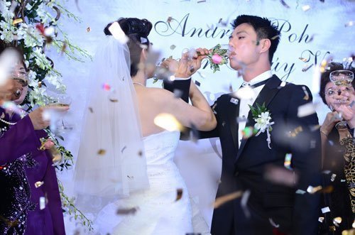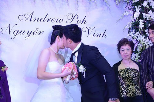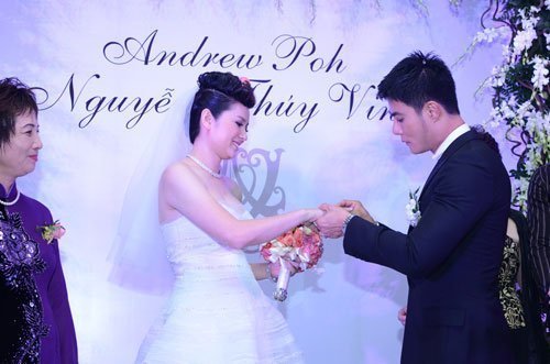 Chú rể Andrew Poh của Thúy Vinh dù gần bước sang tuổi 40 nhưng lại trẻ hơn tuổi thật rất nhiều. Thậm chí, Andrew còn đeo kính không tròng và và chọn những bộ trang phục rất trẻ trung. Anh hiện đang là kiến trúc sư ở Singapore.
