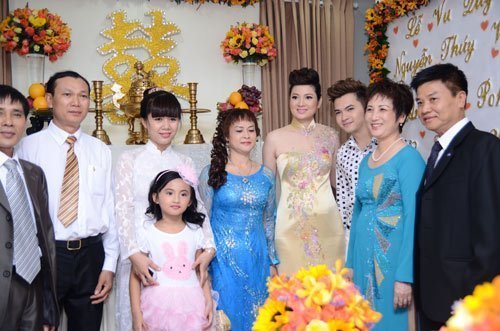 Trong lễ rước dâu chiều nay tại nhà cô dâu ở quận 4 TP.HCM, ngoài gia đình hai bên thì những người thân của Thúy Vinh như Nam Cường, Don Nguyễn, Việt My... cũng đến hỗ trợ cô. Em gái Thúy Vinh – vận động viên wushu Thúy Hiền cũng đưa con gái vào dự đám cưới.