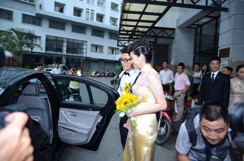 Đó chính là lý do khiến lễ rước dâu của cựu người mẫu kiêm vận động viên cầu mây này phải lùi lại vào lúc 16h chiều 27/7. Trước khi tiệc cưới tưng bừng diễn ra tại khách sạn Shearaton - TP.HCM vào lúc 19 giờ, cô dâu và chú rể đã chính thức ra mắt gia đình nội ngoại hai bên trong lễ đón dâu được tổ chức ngay tại nhà riêng trong không khí thân tình và ấm cúng.