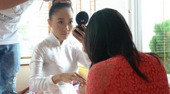 Đoan Trang "tút tát" lại nhan sắc trước khi chú rể tới (Ảnh: Zing) |