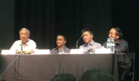 Từ trái qua phải: GS Hà Huy Khoái, nhà văn Nguyễn Phương Văn, GS Ngô Bảo Châu, Nhà Thơ Trần Đăng Khoa |