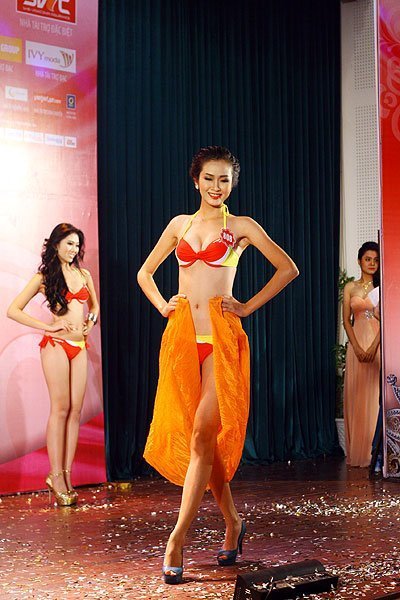 - Với hình thể cân đối cùng một khuôn mặt hài hòa, người đẹp từng khiến dư luận bàn tán về chuyện "có chồng" hay "còn son" đã đi tiếp vào vòng chung kết toàn quốc cuộc thi HHVN 2012.