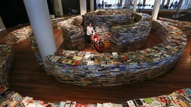Người đọc thích thú khi lạc vào một mê cung đầy màu sắc được tạo nên từ 250.000 cuốn sách các loại.