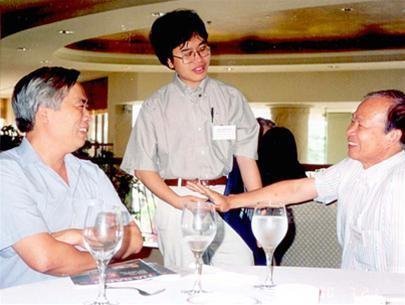 | Giáo sư Phạm Xuân Yêm (phải) - cùng giáo sư Trịnh Xuân Thuận (trái) và giáo sư Đàm Thanh Sơn (giữa). |