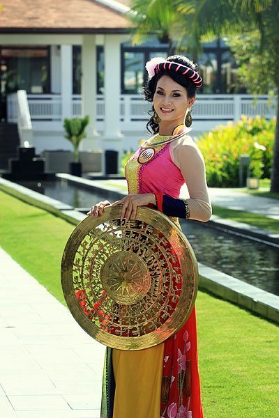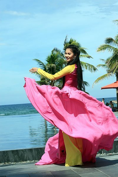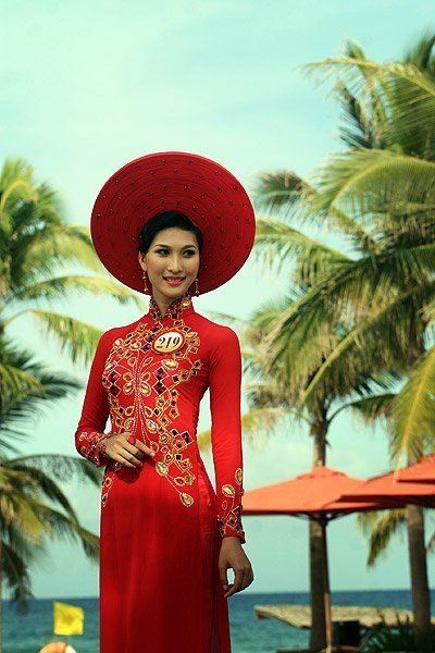 - Mặc cho cái nắng gay gắt của miền Trung các thí sinh của Hoa hậu Việt Nam 2012 vẫn tự tin khoe dáng với tà áo dài.
