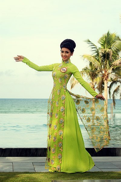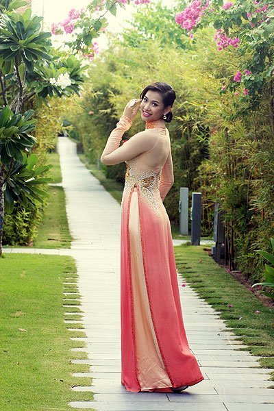 Trong khuôn khổ cuộc thi Hoa hậu Việt Nam 2012 đang diễn ra tại thành phố Đà Nẵng, các thí sinh đã có buổi chụp hình áo dài làm tư liệu vào chiều 19/8 trong khuôn viên của một khu resort sang trọng. Dù phải tập trung từ giữa trưa, thời điểm nắng gắt nhất trong ngày nhưng các cô gái đều đã cố gắng để thể hiện hết mình trước ống kính máy ảnh.