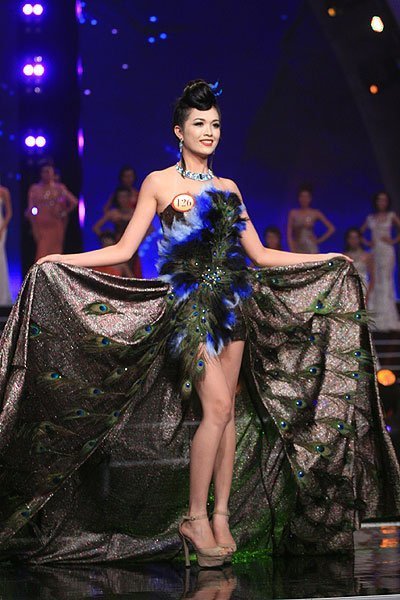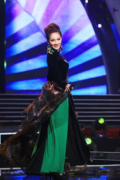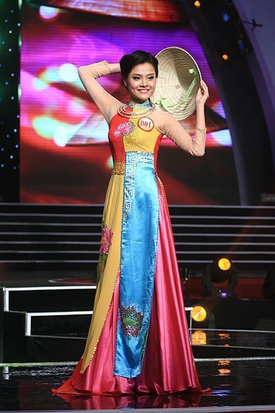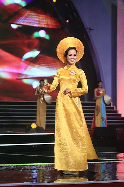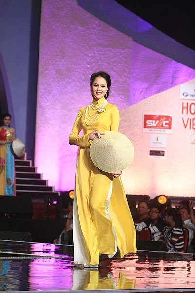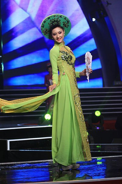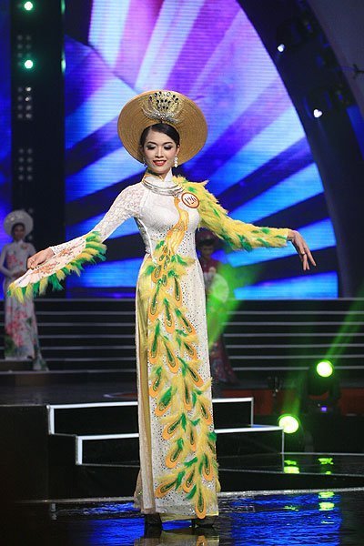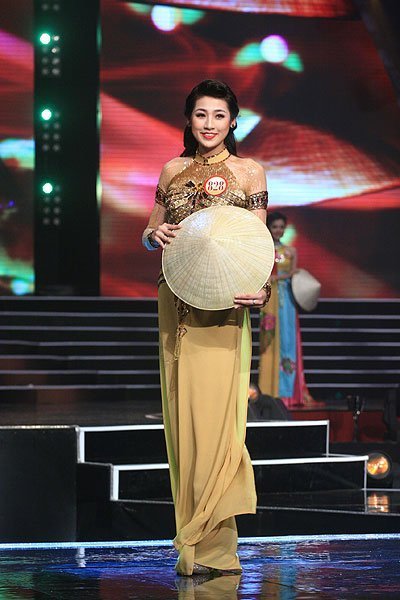 21h: Trong khi đại đa số các thí sinh chọn những chiếc áo dài được thiết kế cầu kỳ với những họa tiết Rồng, Phượng thì một số khác lại chọn những chiếc áo dài đơn giản. Nếu như Đặng Thu Thảo đẹp mong manh, thướt tha trong chiếc áo dài trắng với họa tiết là hoa sen thì Phan Hà Phương dịu dàng, e ấp giống thiếu nữ Hà Nội xưa.