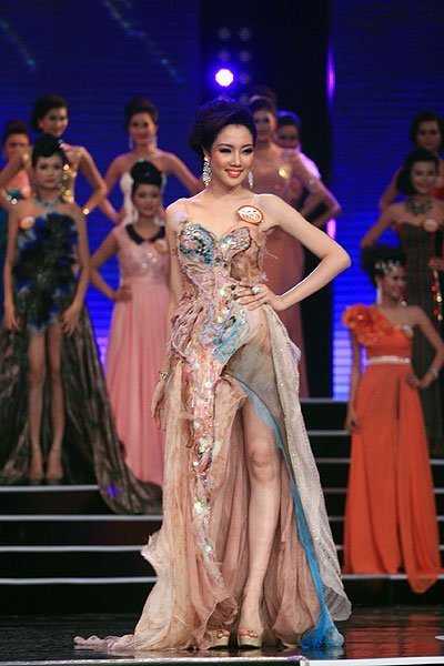 22h: Các thí sinh bắt đầu trải qua phần thi trang phục dạ hội. Một điểm đáng chú ý trong đêm chung kết là các góc máy đặt chưa hợp lý. Do vậy ở phần thi trang phục áo tắm, khán giả có cảm giác chân các thí sinh đều bị cong. Còn ở phần thi trang phục dạ hội, thậm chí khán giả truyền hình còn thấy nhiều thí sinh bị lộ nội y khá rõ do góc máy không chuẩn.
