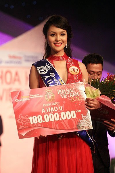 | Á hậu 2 Dương Tú Anh cũng là một cô gái thủ đô, năm nay 19 tuổi. Cô cao 1m72, nặng 54kg, số đo ba vòng 87-63-95. |