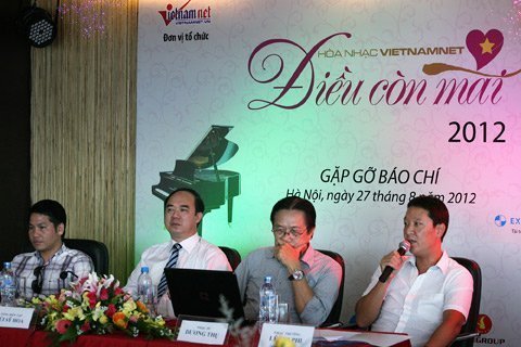Buổi gặp gỡ báo chí chuẩn bị cho hòa nhạc "Điều còn mãi" 2012 diễn ra ấm cúng với sự tham dự của những phóng viên quan tâm đến những vấn đề nghiêm túc và lâu dài của âm nhạc Việt. Tổng biên tập báo VietNamNet - nhà báo Bùi Sỹ Hoa, nhạc sĩ Dương Thụ, nhạc trưởng Lê Phi Phi, ca sĩ Trọng Tấn và gần 40 nhà báo/phóng viên văn nghệ từ các đài truyền hình và các tờ báo trong cả nước... đã có cuộc trò chuyện chậm rãi về công tác chuẩn bị cho buổi hòa nhạc, cũng như ý nghĩa, thông điệp truyền tải của từng tác phẩm trong chương trình.