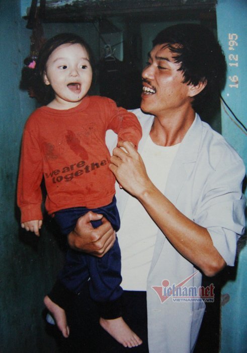 | Hoàng Anh trong vòng tay bố khi hơn 2 tuổi. |