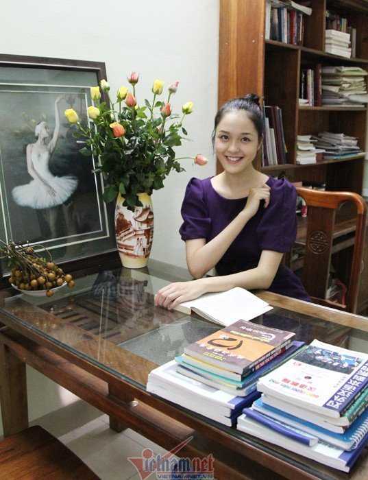 Hoàng Anh cho biết cô rất thích học tiếng Trung. Vì vậy không có để nhận ra trên bàn học của Hoàng Anh có rất nhiều sách tiếng Trung. |