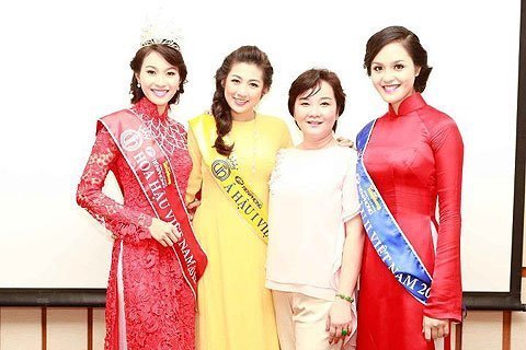 Chị Võ Thị Xuân Trang bên cạnh tân Hoa hậu cùng hai Á hậu