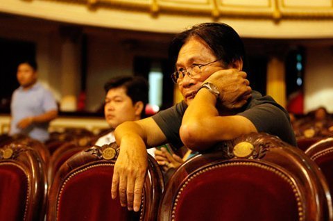 | Nhạc sĩ Dương Thụ ngồi ở phía dưới vẫn luôn lo lắng và chỉ đạo sát sao những chi tiết chưa ưng ý. |