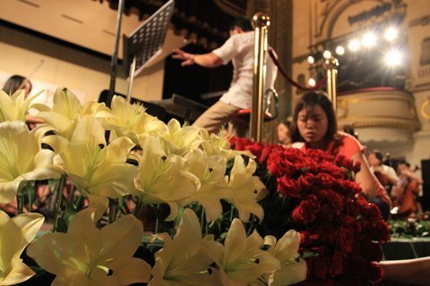 Tuy cơn mưa lớn bất chợt trút xuống vào buổi sáng nhưng trong Nhà hát lớn, các nghệ sĩ, ca sĩ và những người làm chương trình vẫn có mặt đông đủ để cùng nhau tập luyện và thống nhất lần cuối cùng trước khi giờ diễn chính thức bắt đầu lúc 14h chiều.