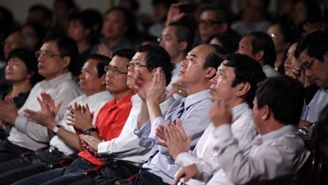 | Ngồi ở hàng ghế đầu, từ phải sang: Nhạc sỹ Đỗ Hồng Quân, Chủ tịch Hội Nhạc sỹ Việt Nam, ông Nguyễn Đăng Tiến, Tổng GĐ Đài tiếng nói Việt Nam, Tổng biên tập báo VietNamNet Bùi Sỹ Hoa, ông Vũ Ngọc Hoàng, Phó trưởng ban thường trực Ban Tuyên giáo TƯ, Phó Tổng biên tập báo VietNamNet Phạm Anh Tuấn, ông Lê Doãn Hợp, Chủ tịch Hội truyền thông số VN. PGS-TS Trần Đình Thiên, Viện trưởng Viện Kinh tế Việt Nam. |