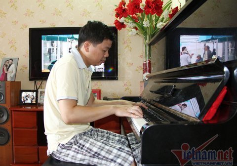 | Đăng Dương đang say sưa chơi một bản nhạc tặng khách. |
