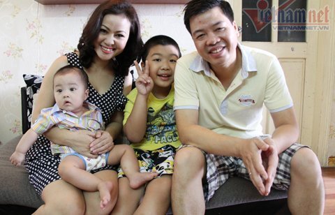 | Đăng Dương cùng vợ và hai thiên thần. |