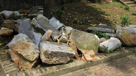 Những tảng đá cũ rêu phong cũ còn nguyên vẹn đều bị gỡ bỏ mà không rõ lí do vì sao không được giữ lại để tái sử dụng.
