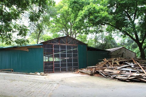 Xưởng gỗ được đặt ngay trên đồi cạnh chùa Trăm Gian