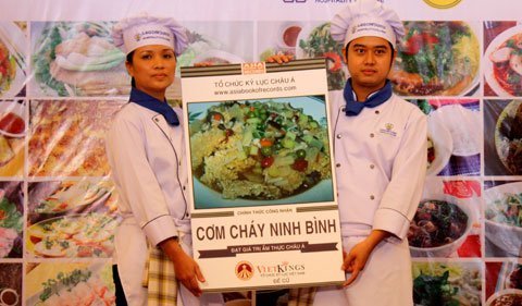 Theo đó, 12 món ăn đặc sản được Tổ chức Kỷ lục châu Á công nhận là chỉ có duy nhất ở VN cũng như đáp ứng được bộ tiêu chí xác lập “Giá trị ẩm thực châu Á”, bao gồm: Phở Hà Nội, Bún chả Hà Nội, Bánh đa cua Hải Phòng, cơm cháy Ninh Bình, Miến lươn Nghệ An, Phở khô Gia Lai, Bánh khọt Vũng Tàu, Gỏi cuốn Sài Gòn và Cơm tấm Sài Gòn.