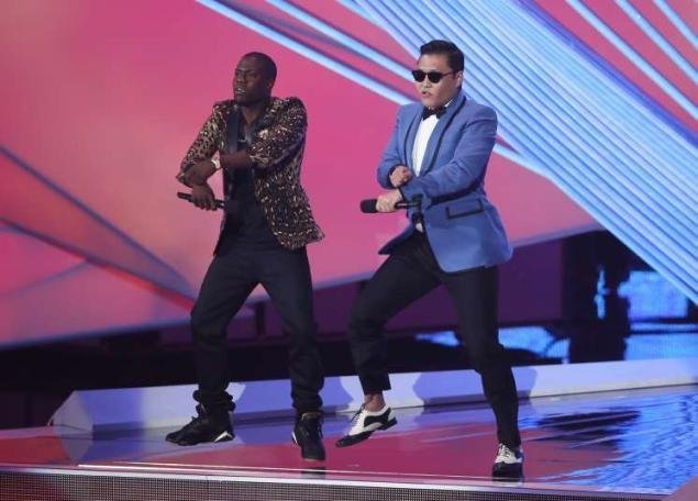 PSY trình diễn trên sân khấu lễ trao giải VMAs cuối tuần qua.