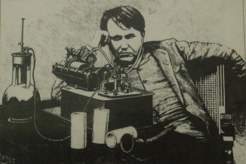 | Bức tranh nhà khoa học Thomas Edison được nhạc sĩ An Thuyên treo trong phòng. |