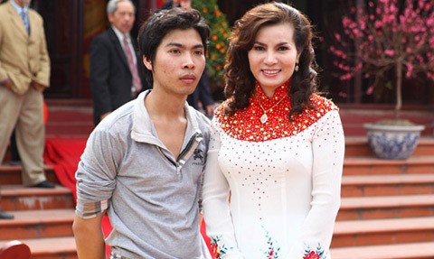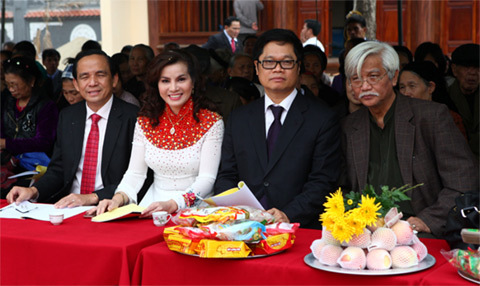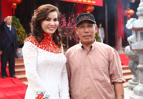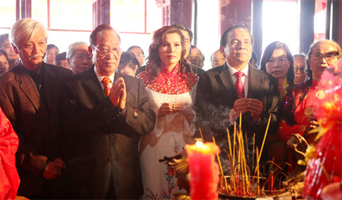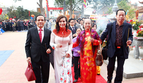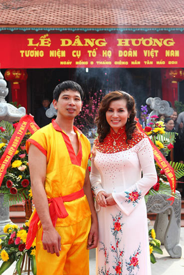 | Vợ chồng hoa hậu Kim Hồng thành kính dâng hương |