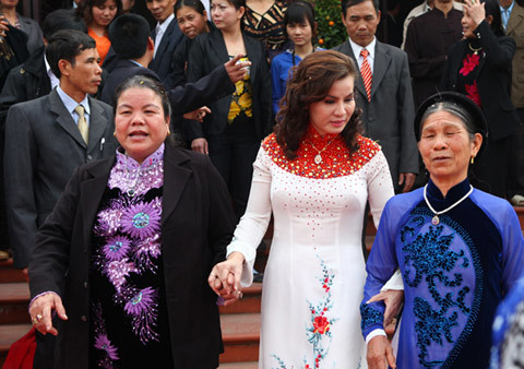 Nhiều người dân không chỉ xin chụp ảnh, quay hình mà thậm chí còn xin chữ ký của hoa hậu Kim Hồng. Đồng hành với hoa hậu Kim Hồng trong lễ dâng hương đầu năm còn có ông xã và người mẹ ruột. Ngoài ra còn có nhiều vị khách tên tuổi trong các lĩnh vực chính trị, kinh tế, xã hội, văn hóa... như nguyên Phó Thủ tướng Đoàn Duy Thành, nhà sử học Dương Trung Quốc...