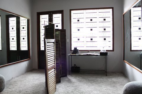 Nơi làm việc của NTK Công Trí với cửa sổ lớn và một không gian tách biệt nhưng vô cùng đặc biệt.