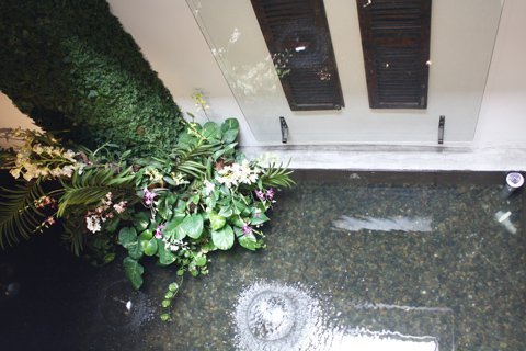 Chiếc giếng trời được đặt giữa ngôi nhà cùng với bể nước và con đường dẫn bằng đá tạo nên một không gian thiên nhiên.